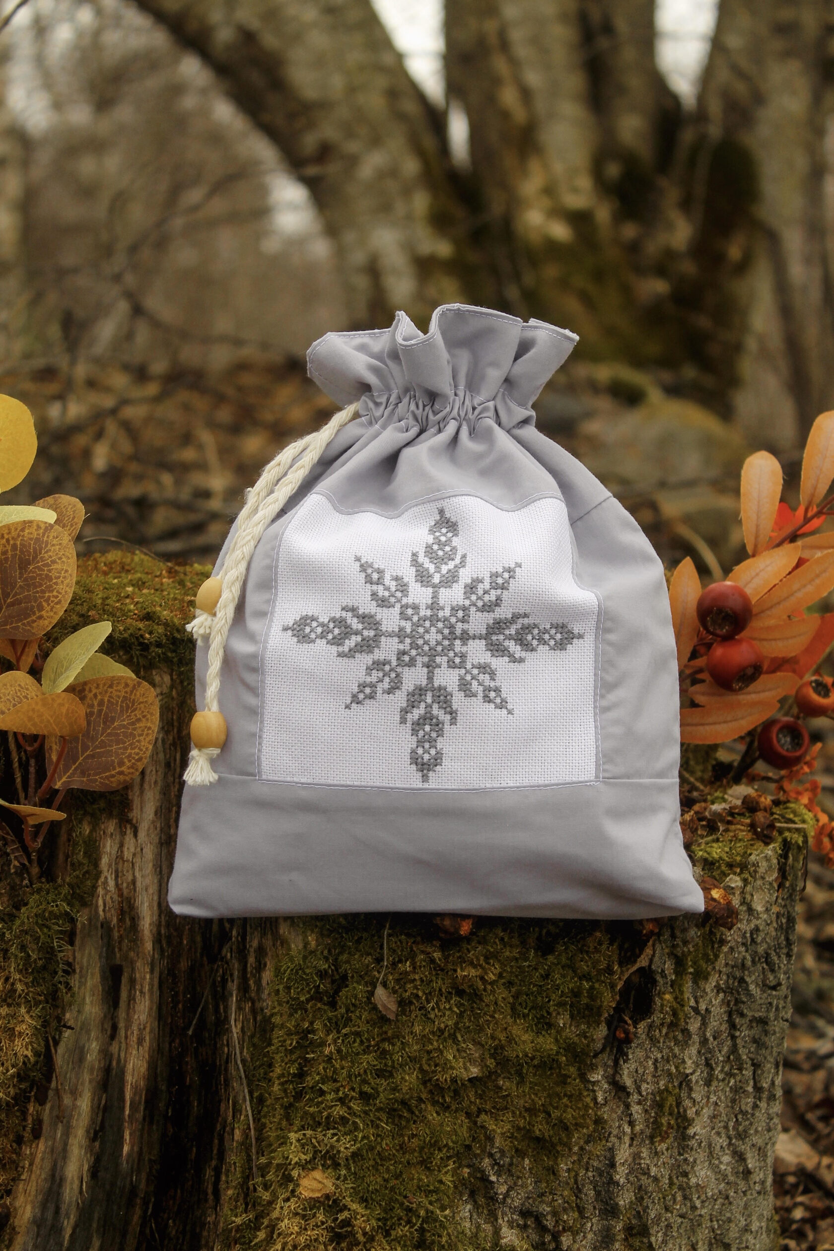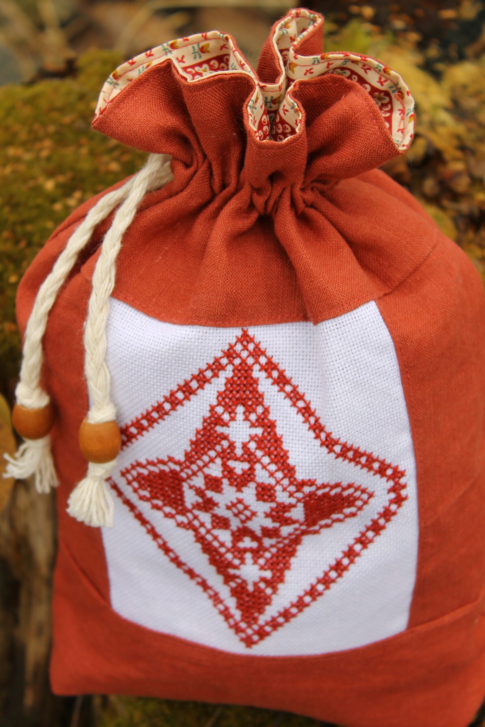 "Ethnic pouch bag" Bag in a single copy, hand embroidery with cross stitch