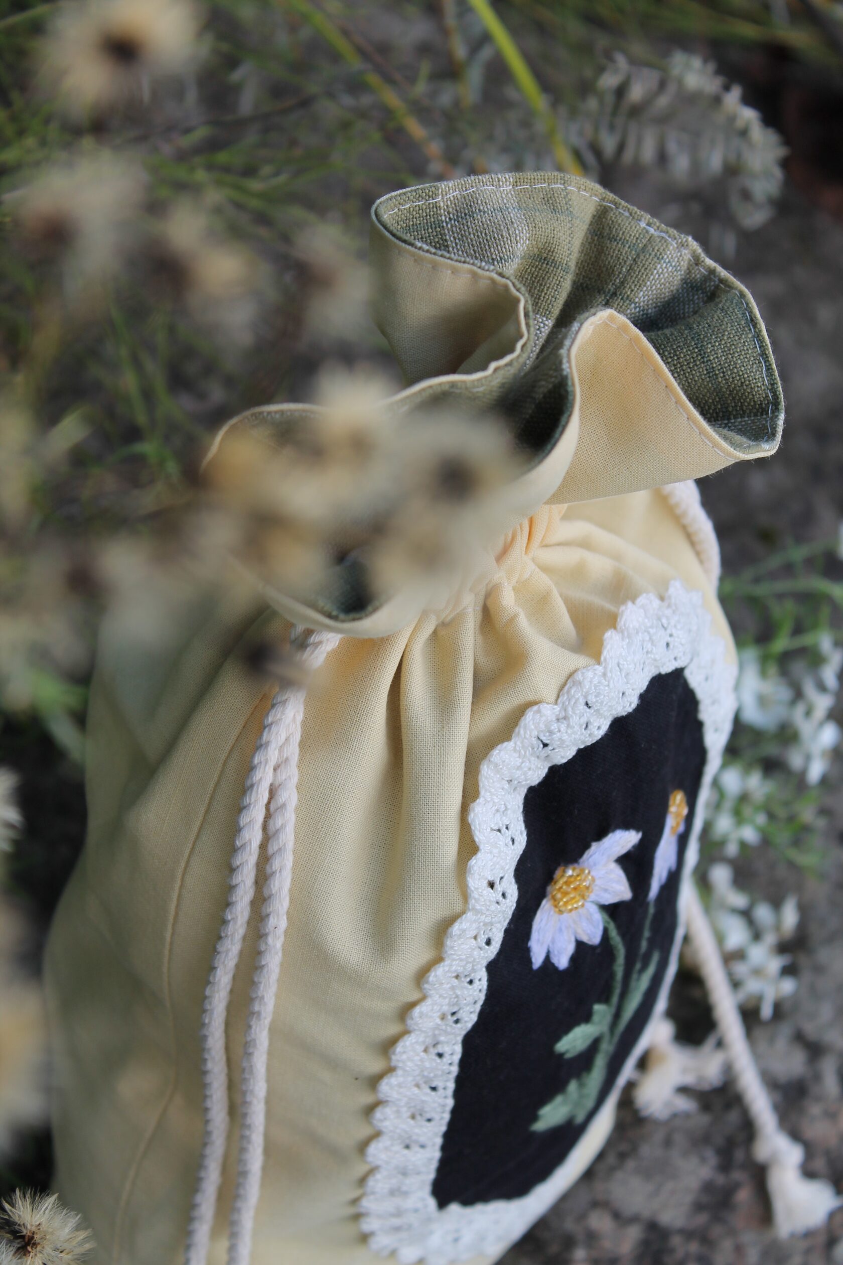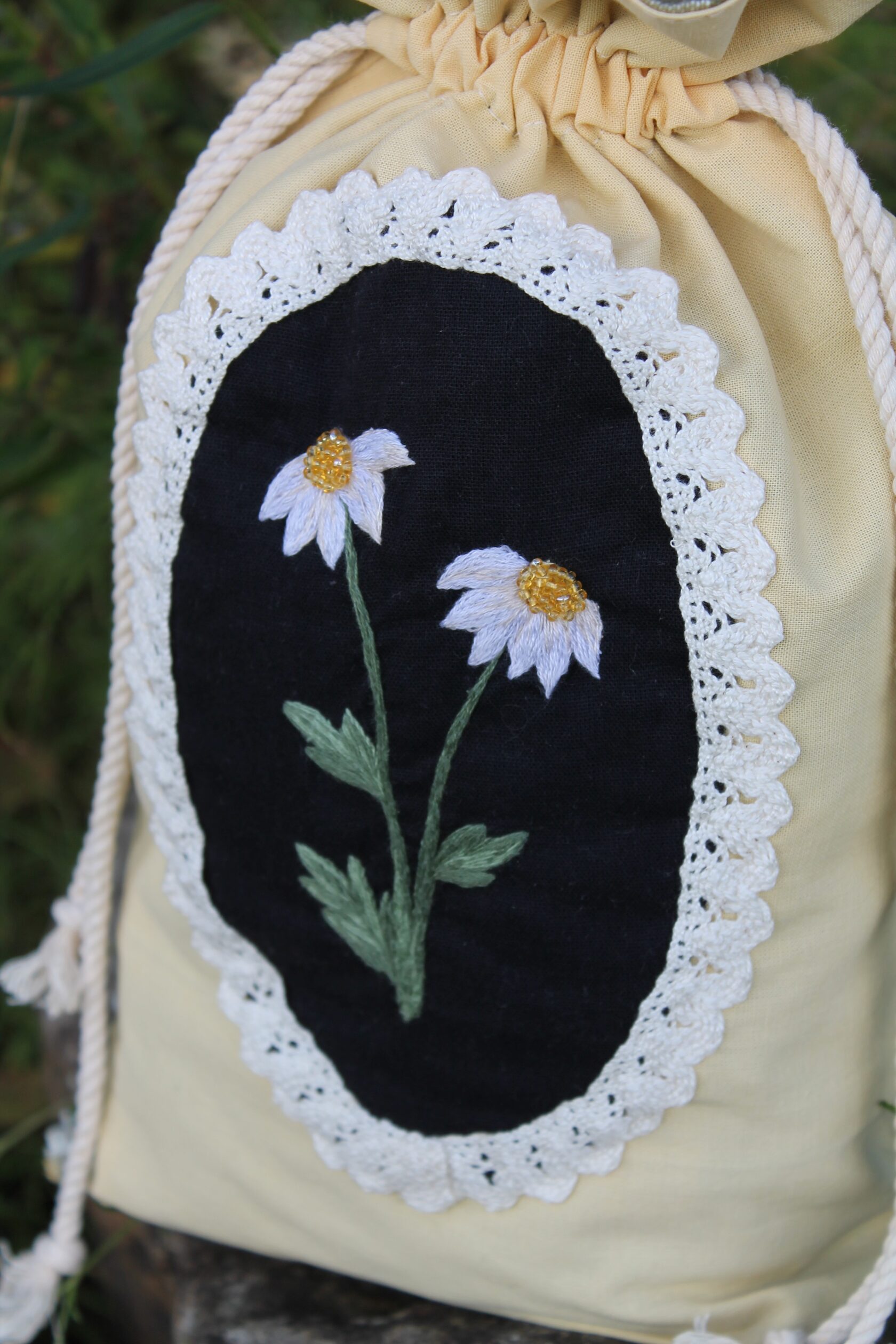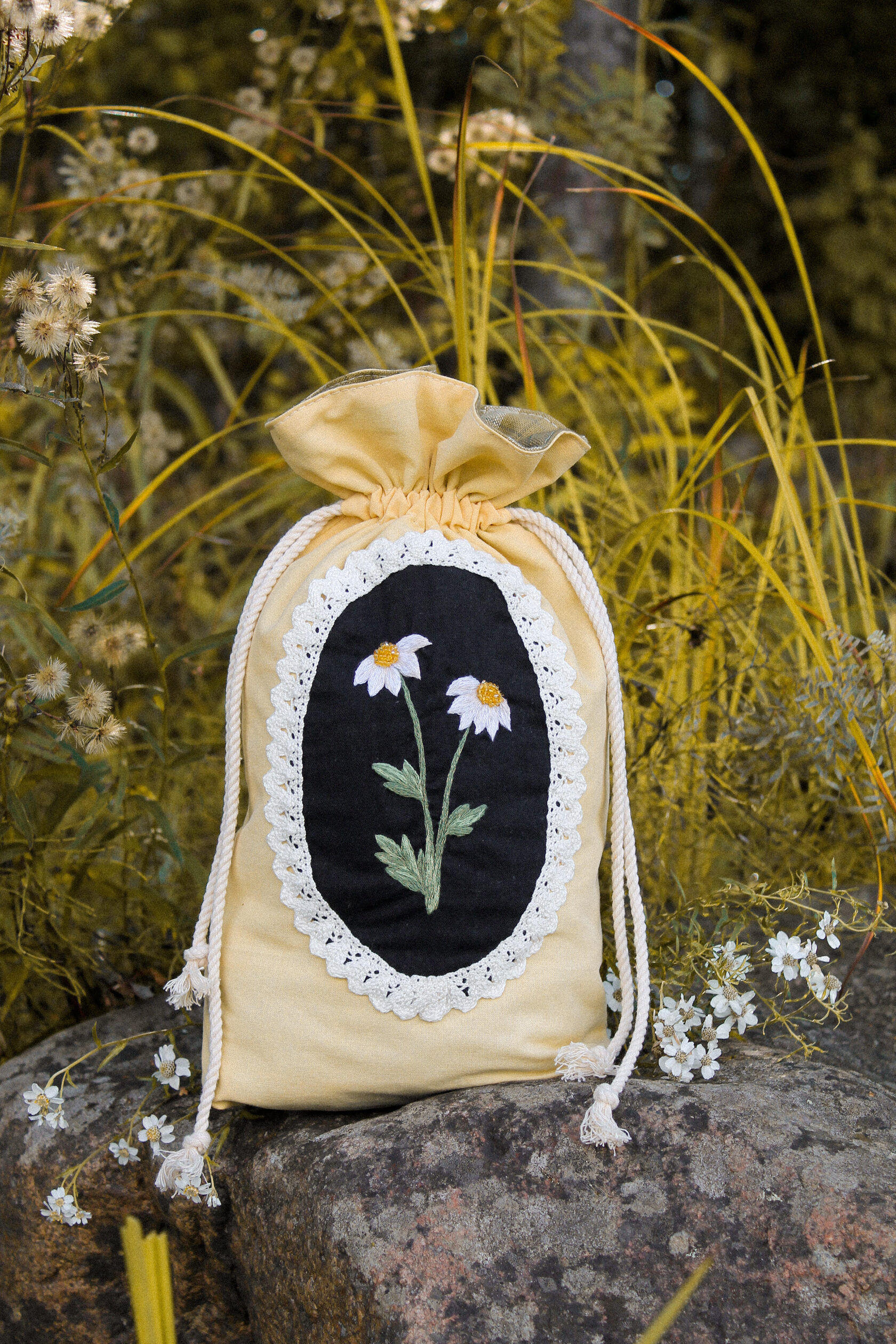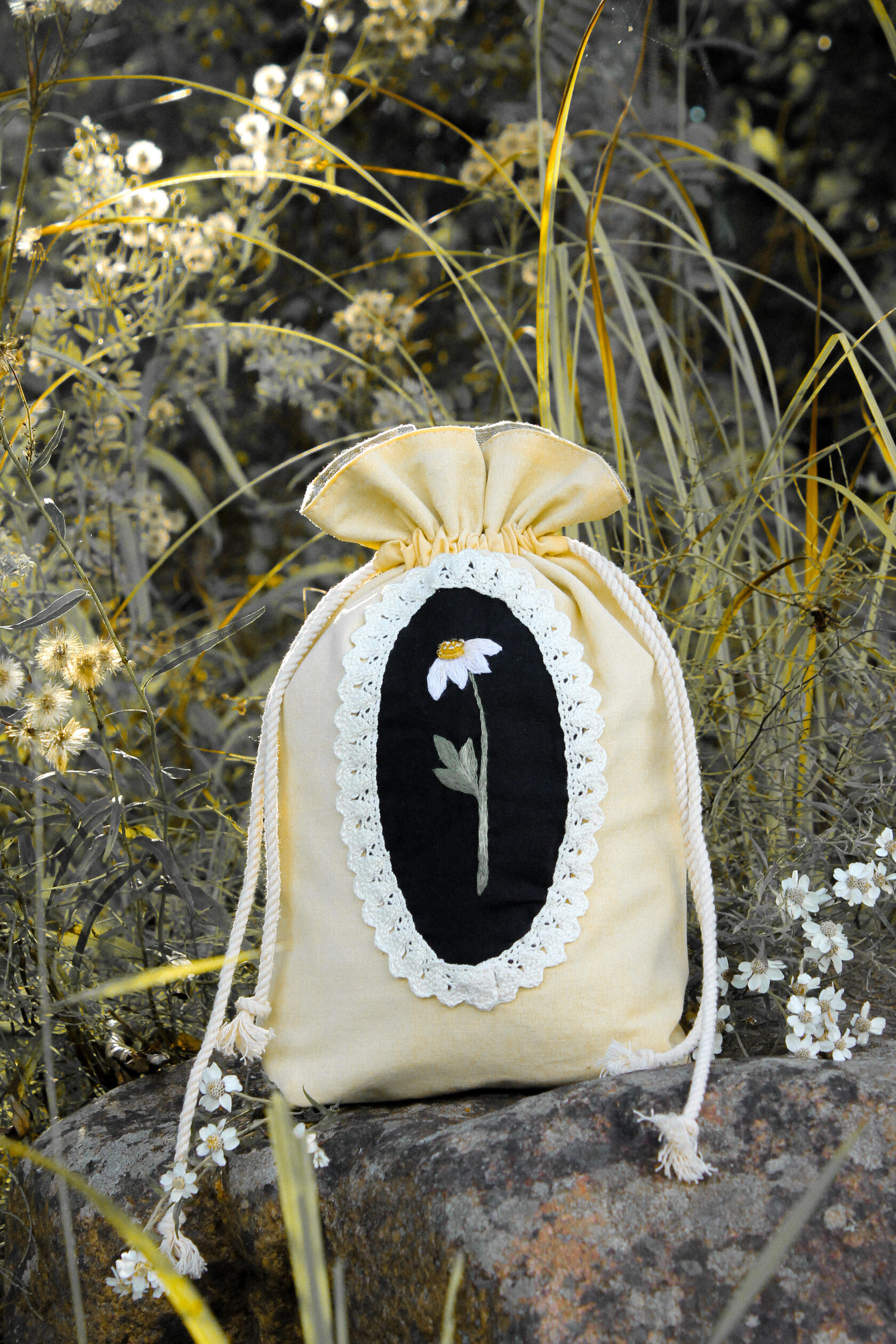 "Chamomile pouch bag" Bag in a single copy, hand embroidery with satin stitch