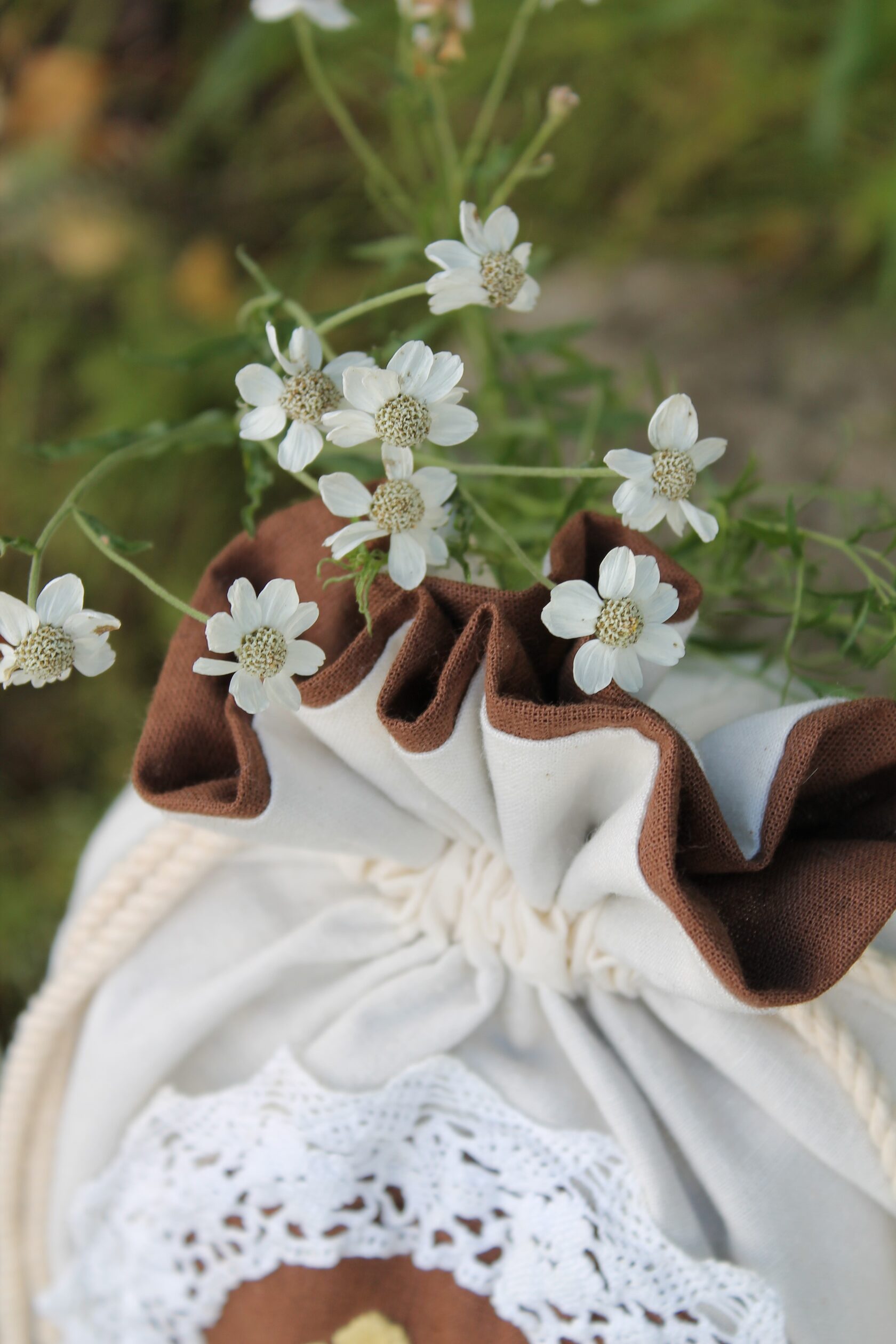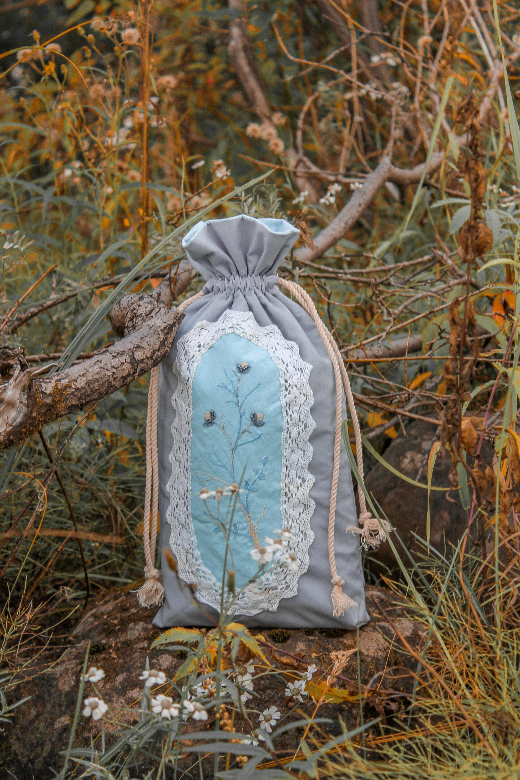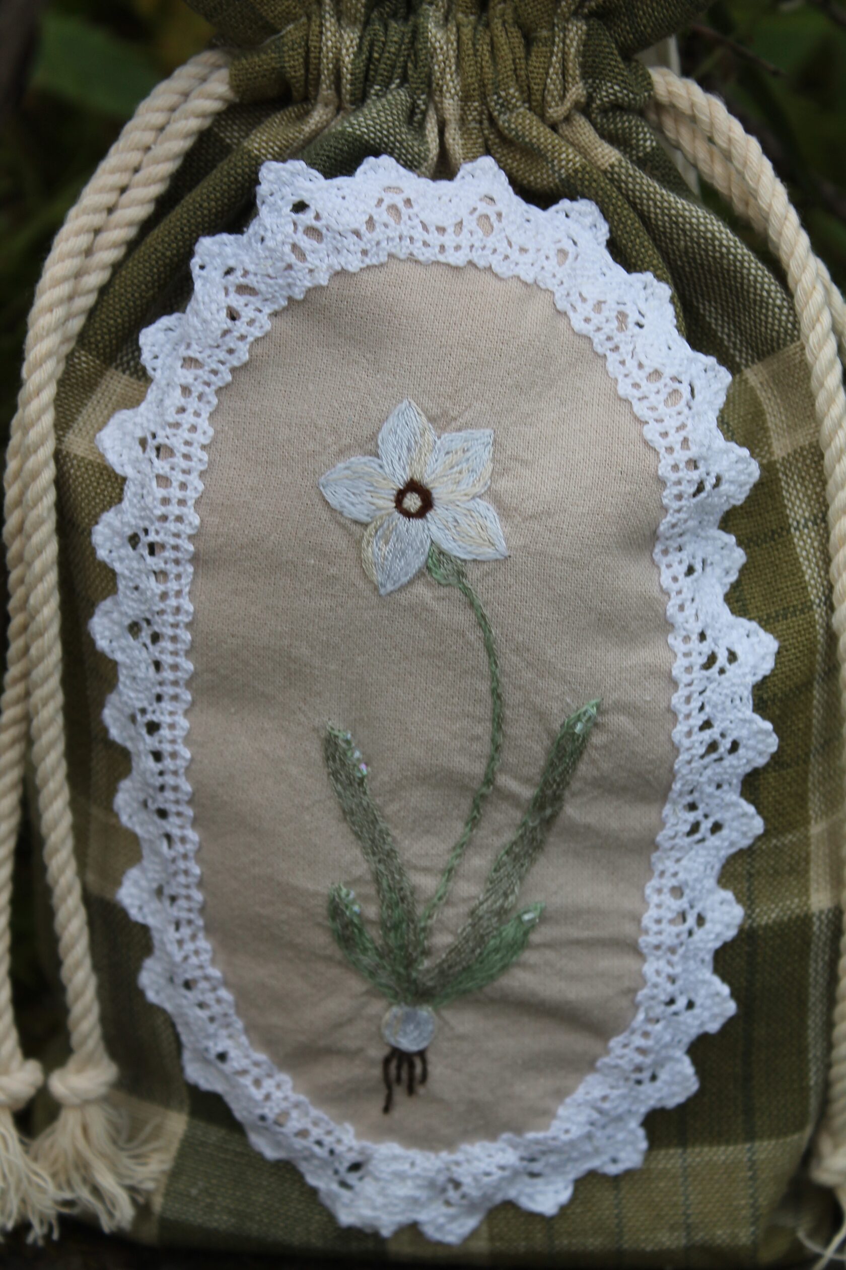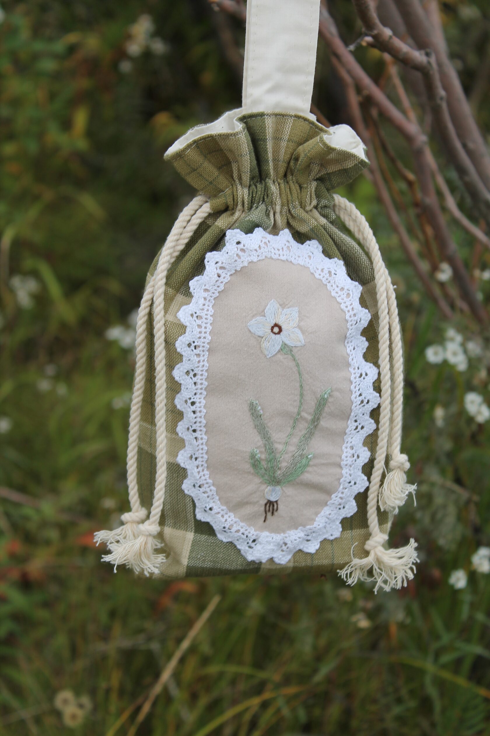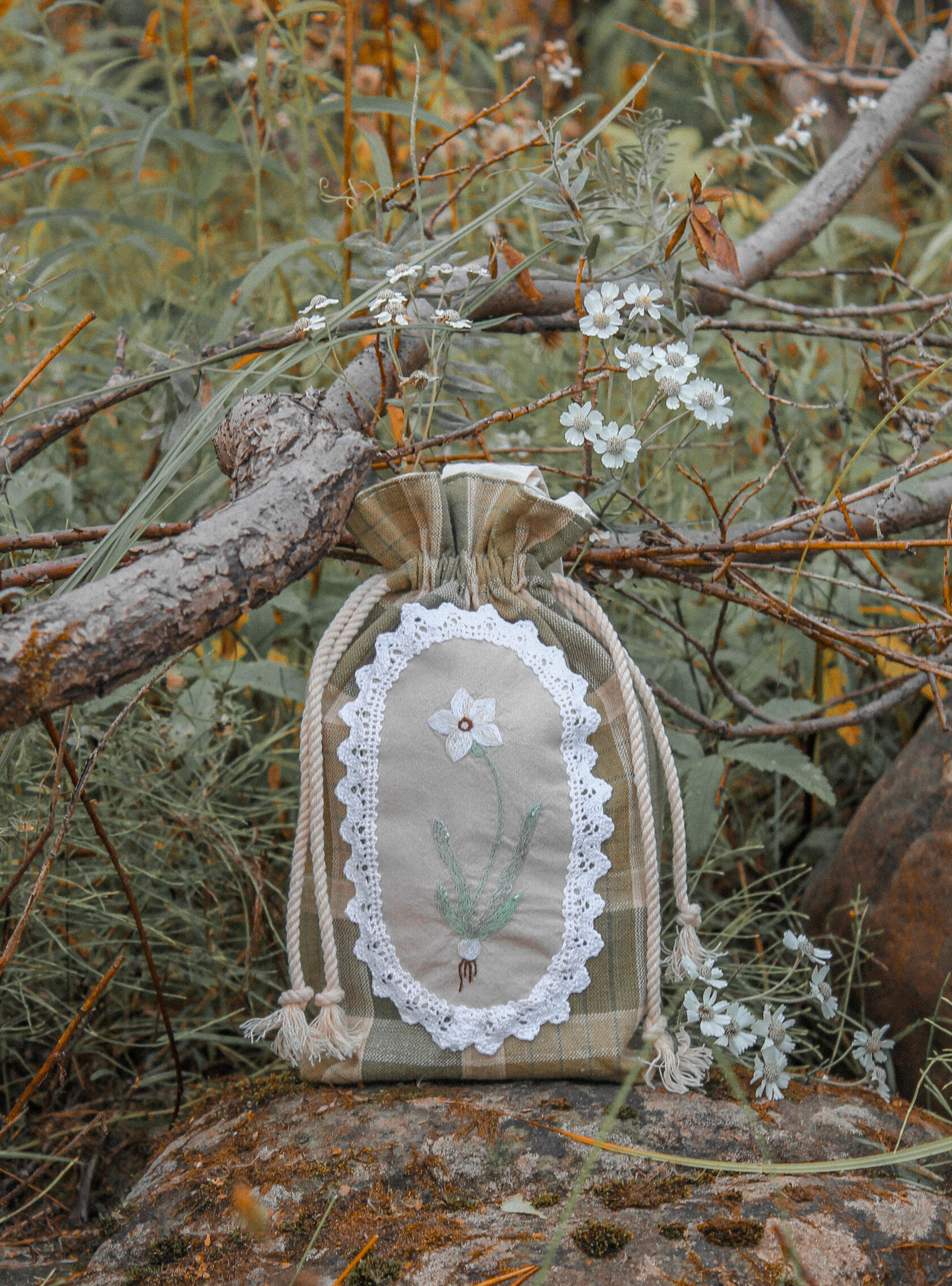 "Chamomile pouch bag" Bag in a single copy, hand embroidery with satin stitch