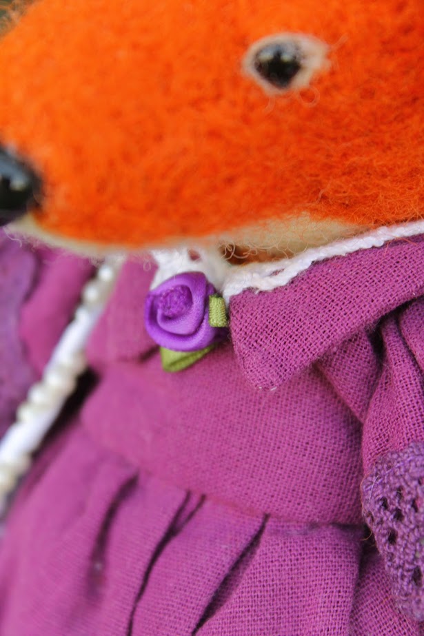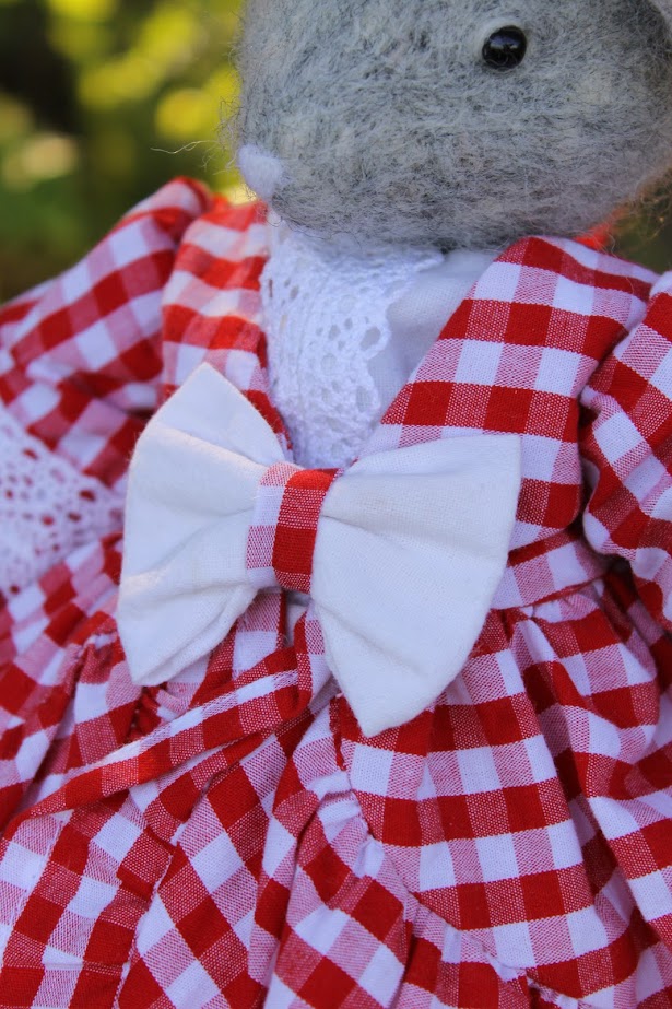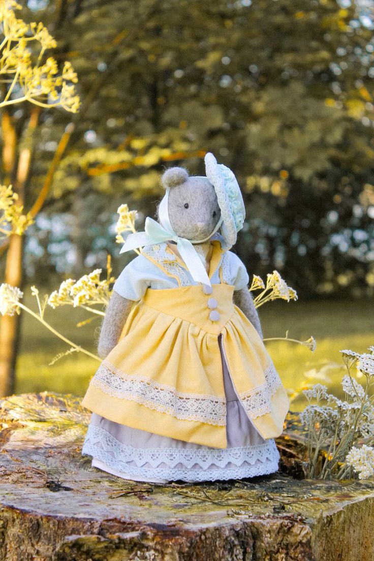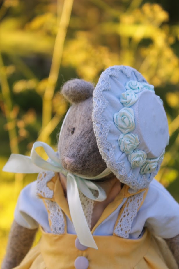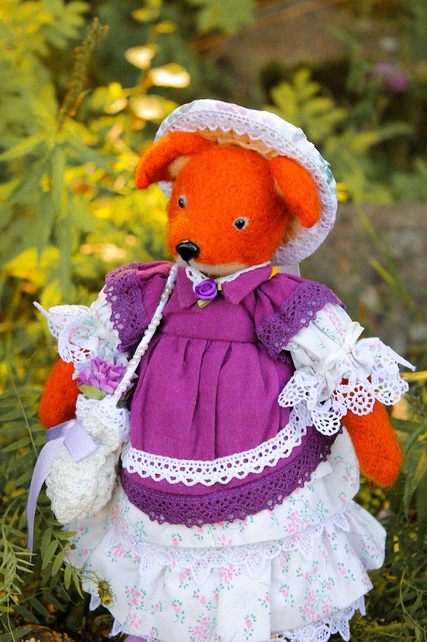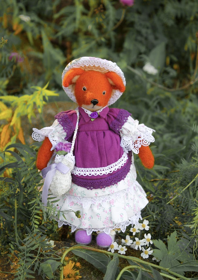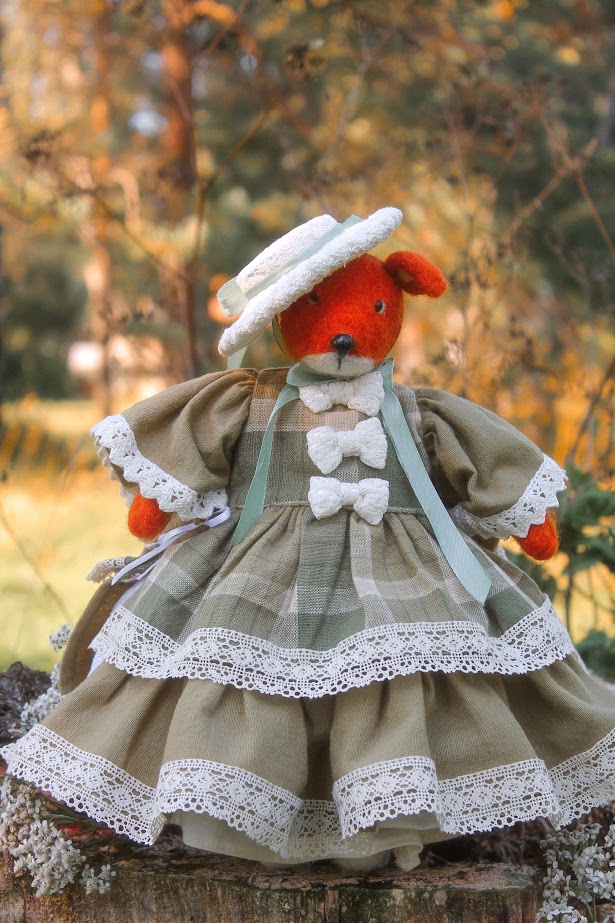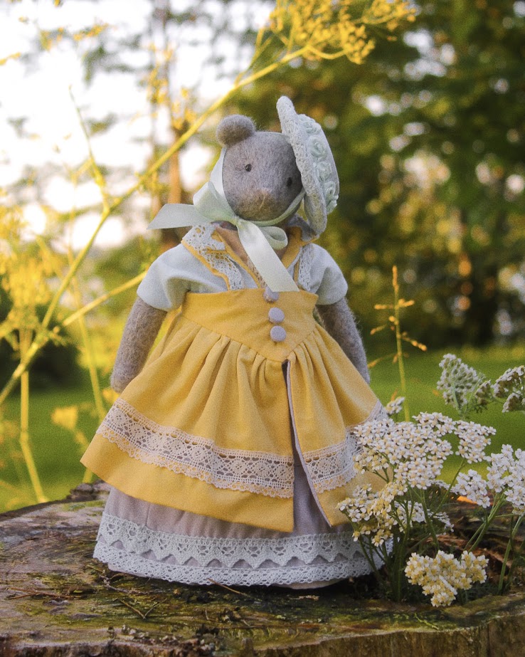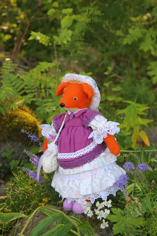 This textile doll is from the collection of "Forest Ladies". Each doll is special and unique in its own way. Each has a special outfit and mood. They also have individual coasters with names. The collection includes mice, foxes and bear cubs.