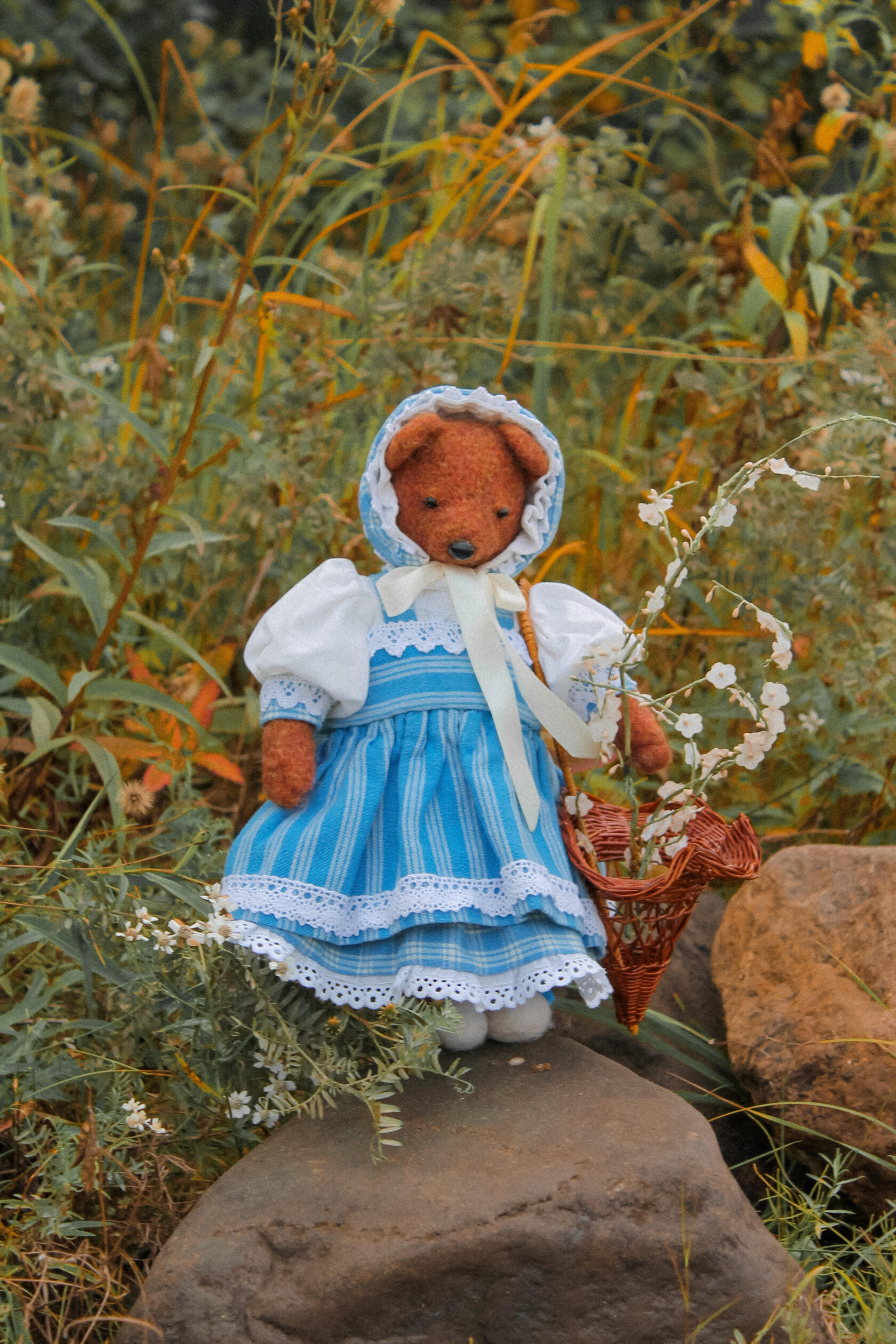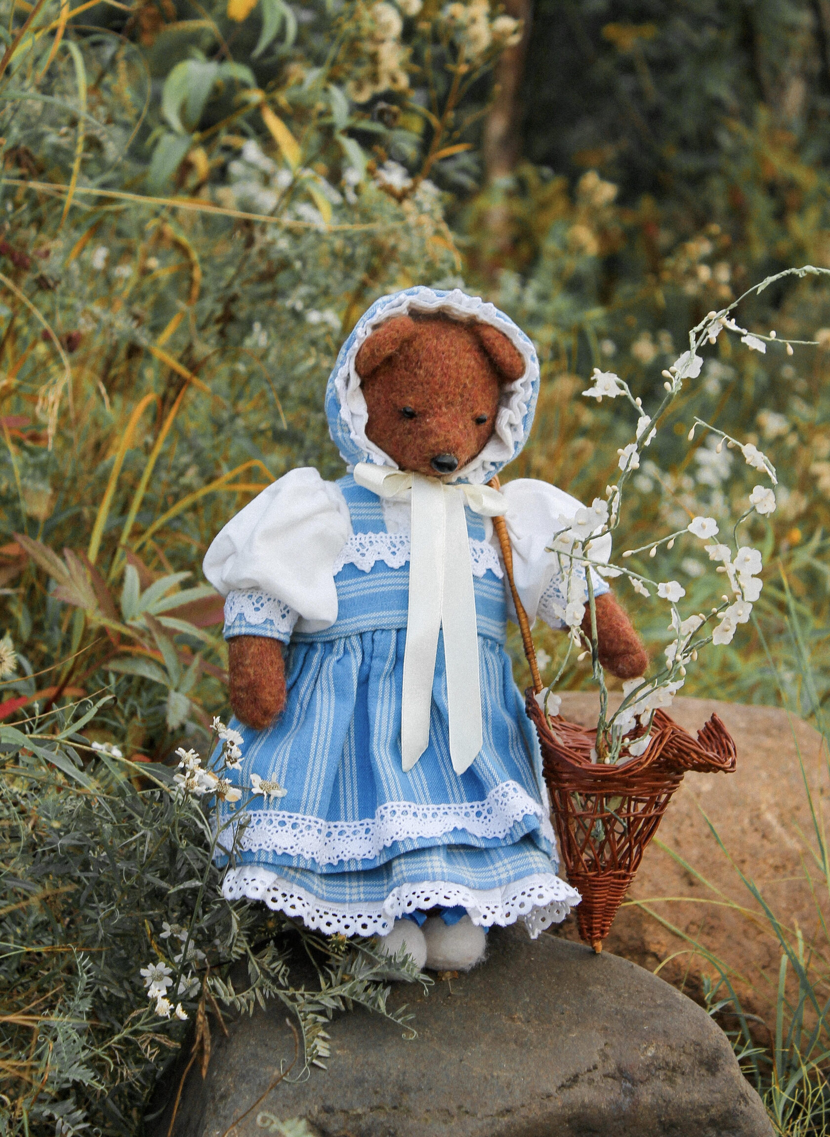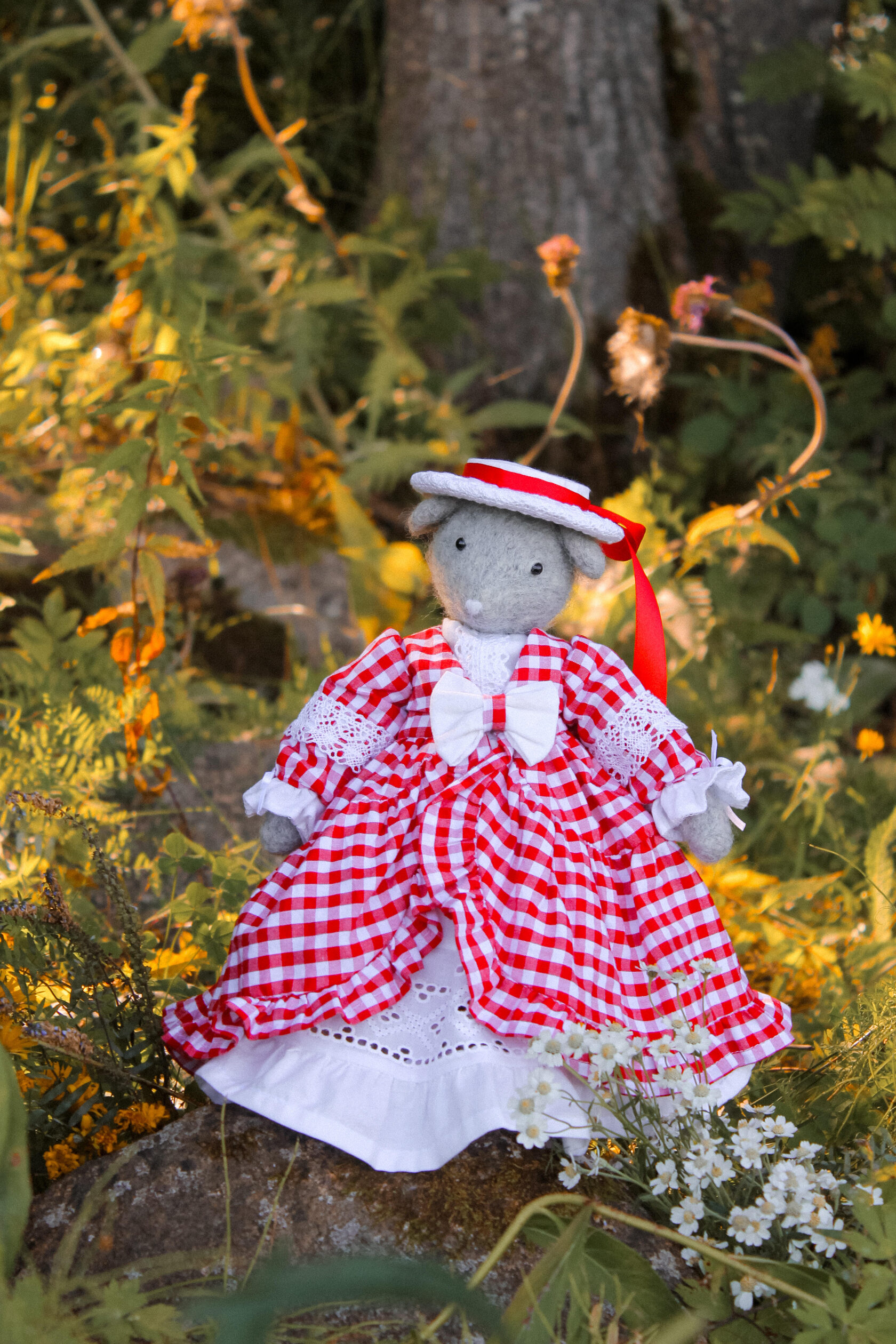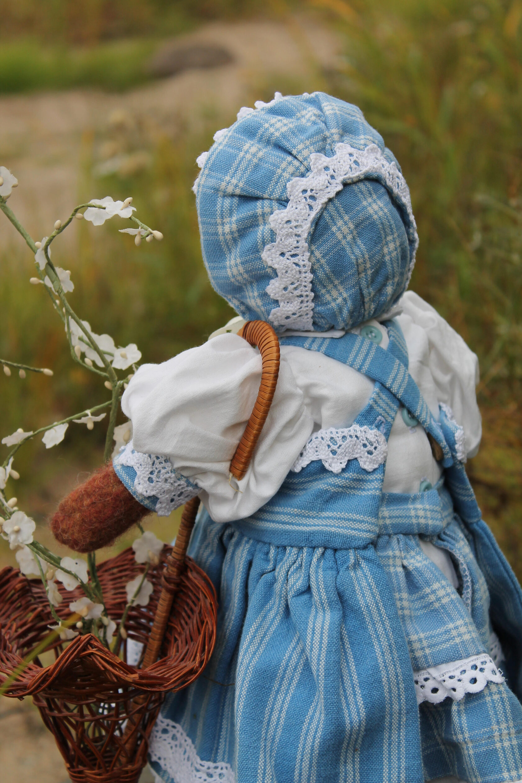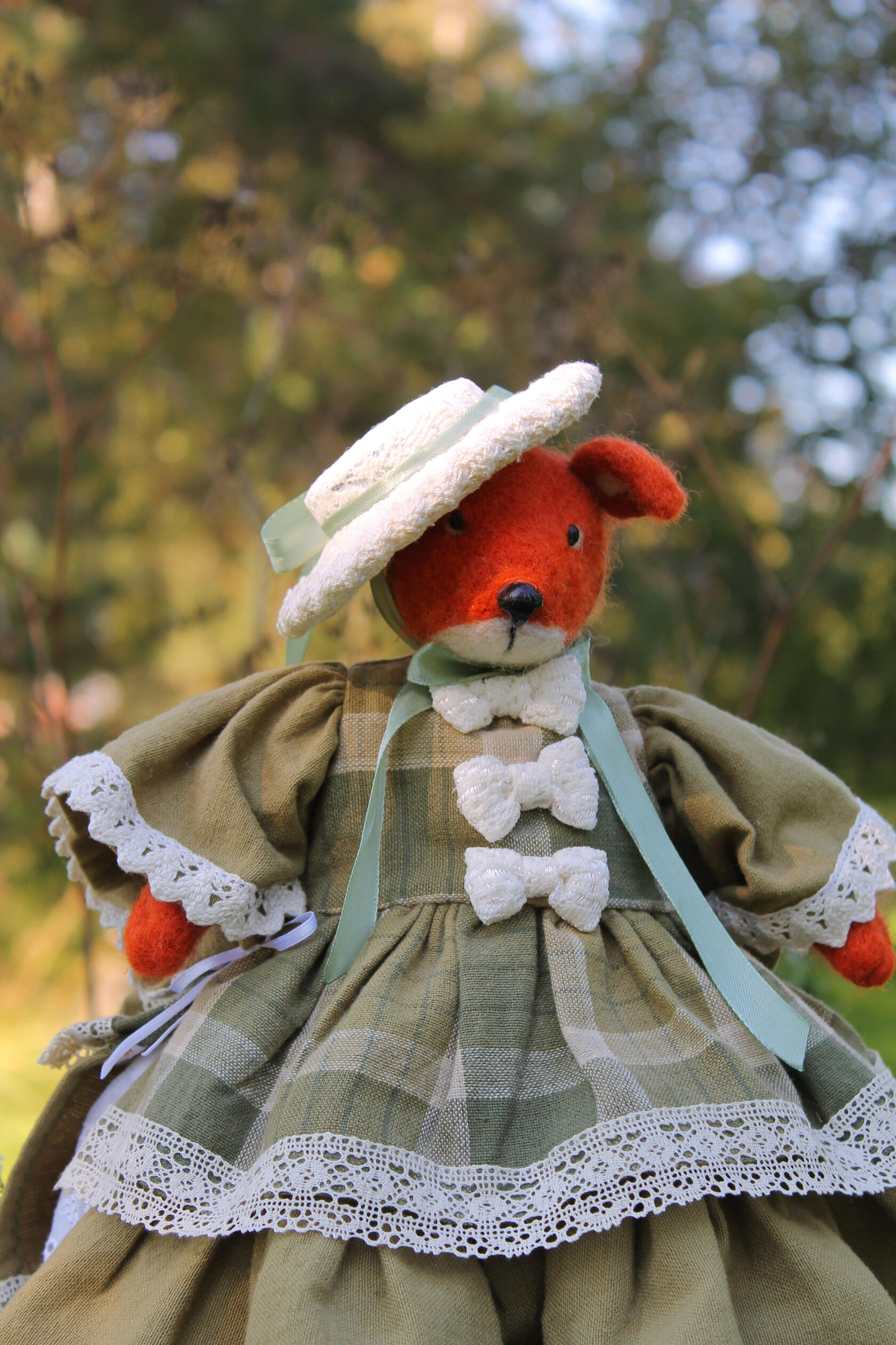 This textile doll is from the collection of "Forest Ladies". Each doll is special and unique in its own way. Each has a special outfit and mood. They also have individual coasters with names. The collection includes mice, foxes and bear cubs.