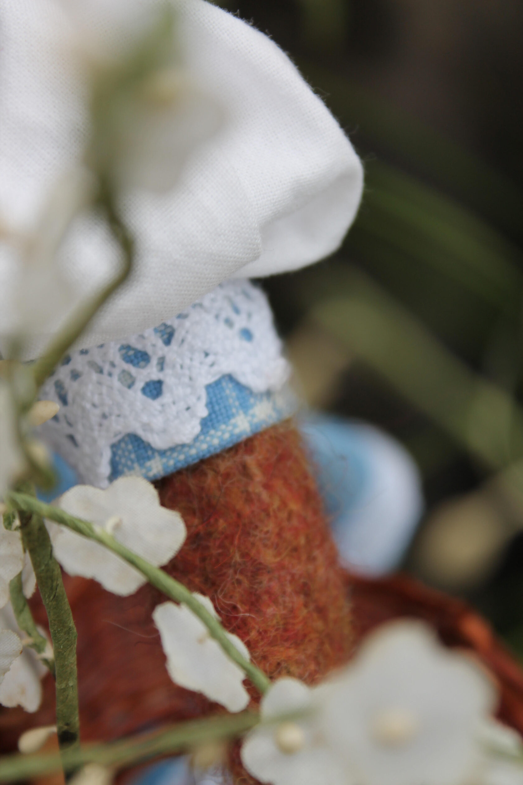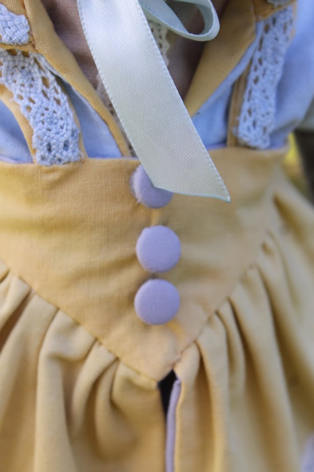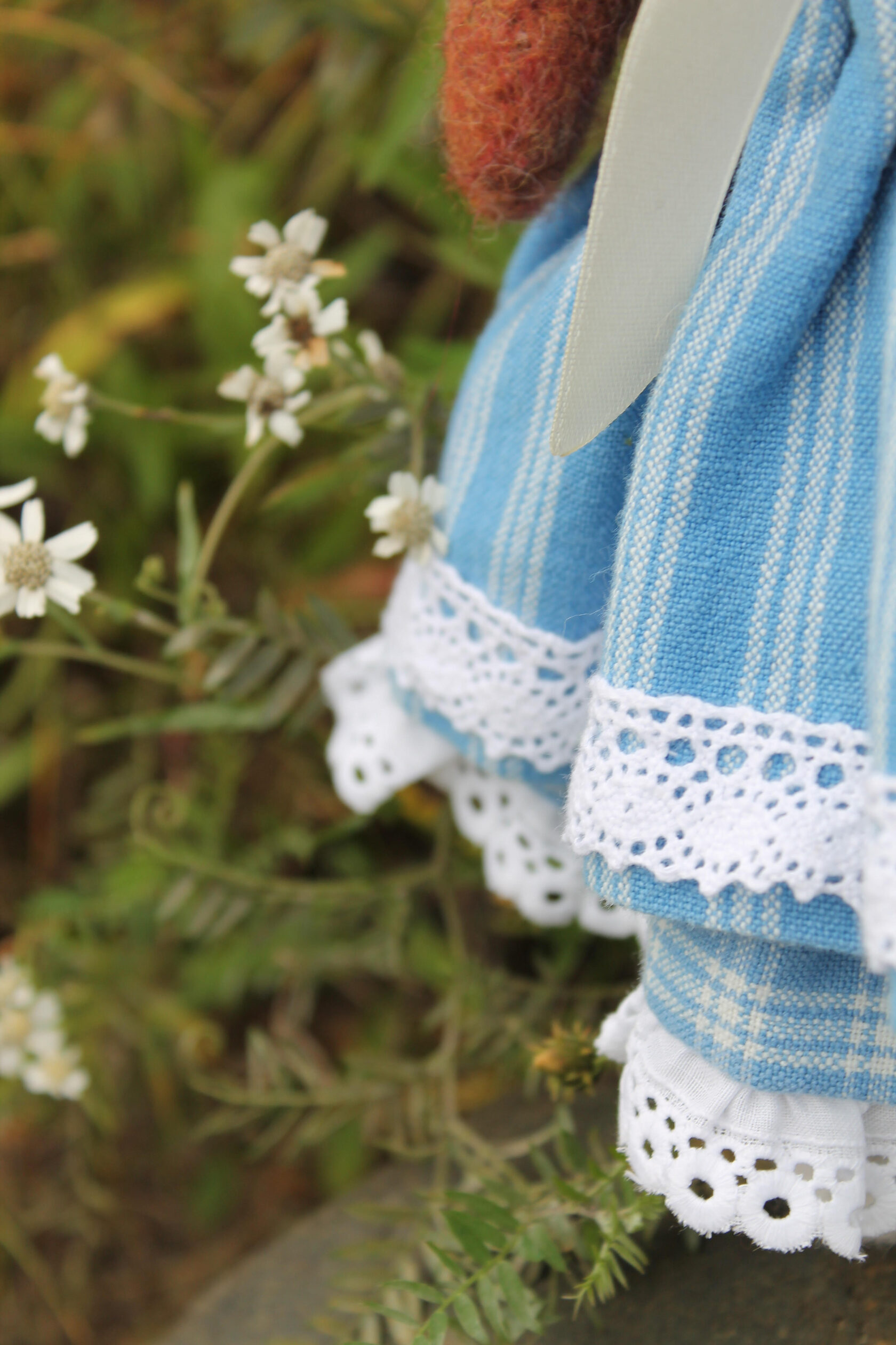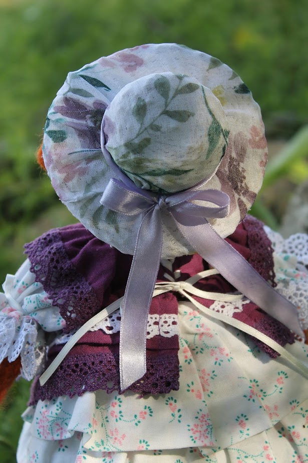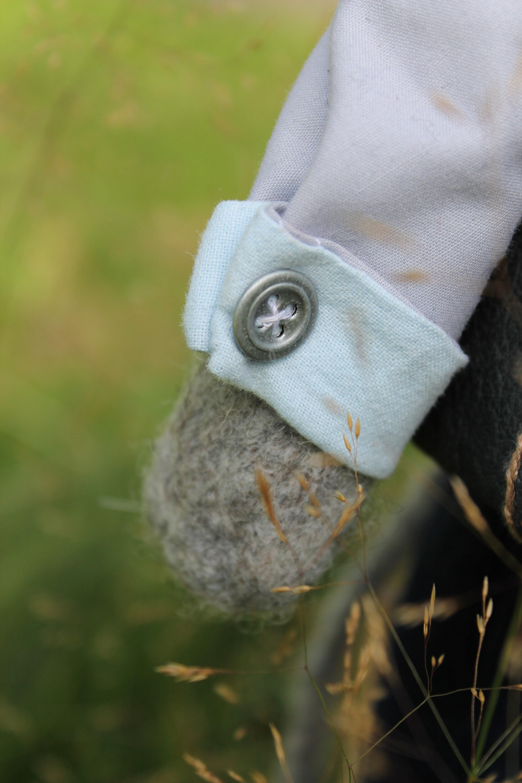 I used wool yarn, then felting wool and cotton as outfits. All dolls consist of 75% wool. She measure 31 cm's