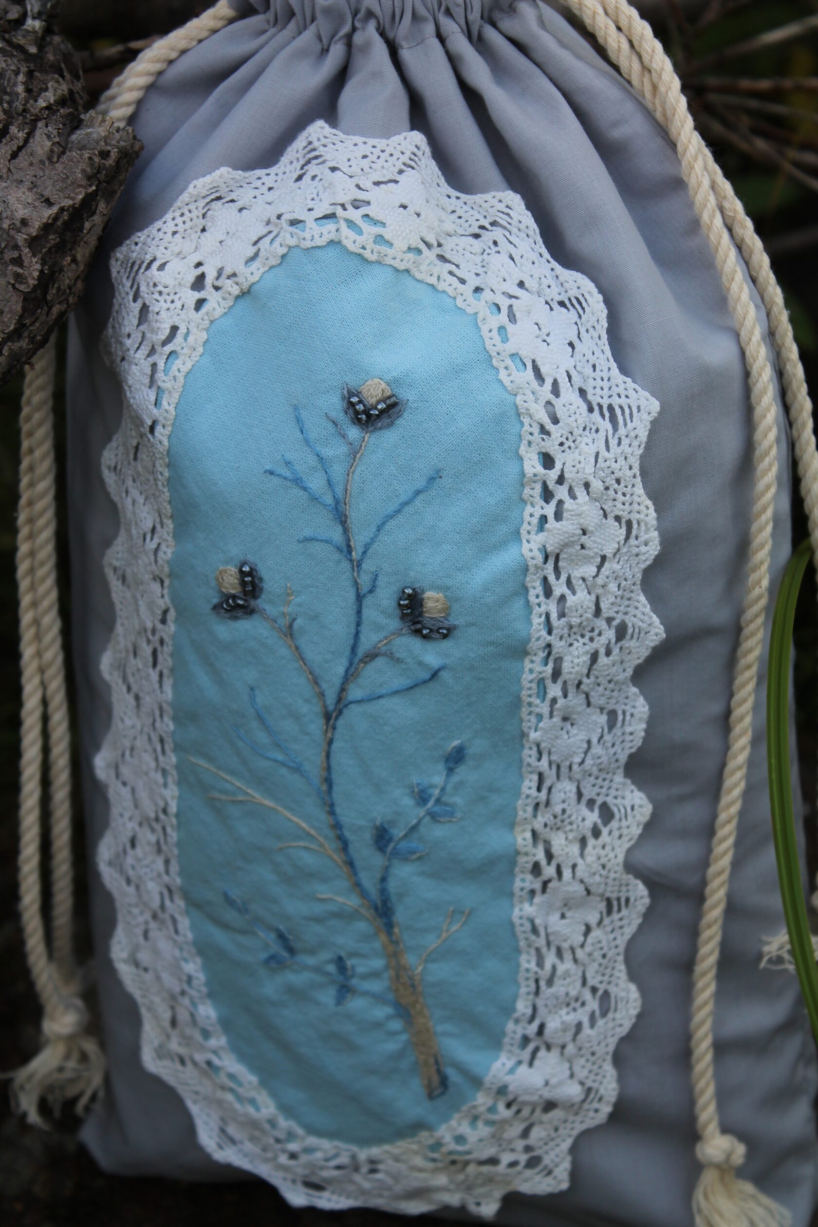 "Spring pouch in blue" Bag in a single copy, hand embroidery with satin stitch