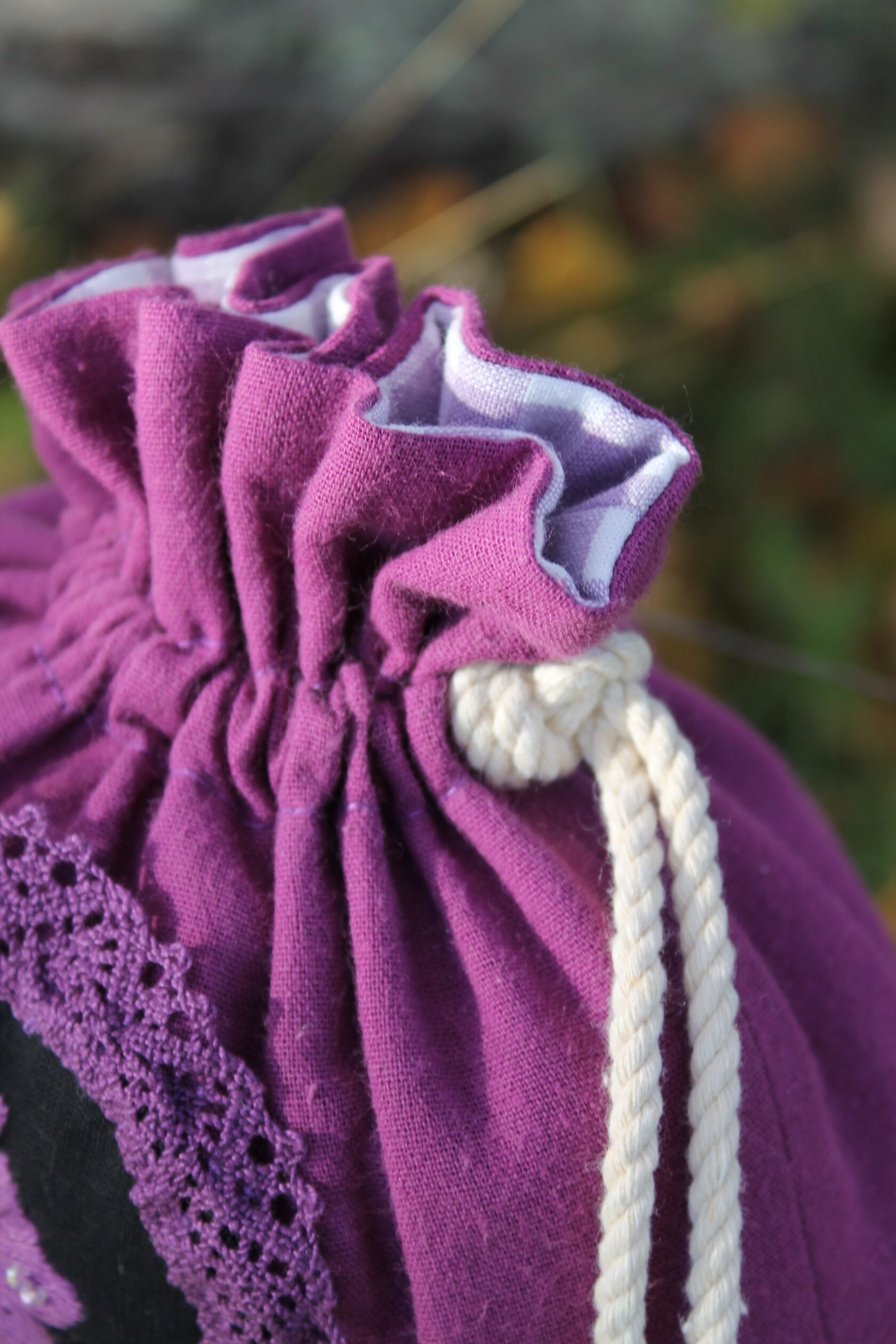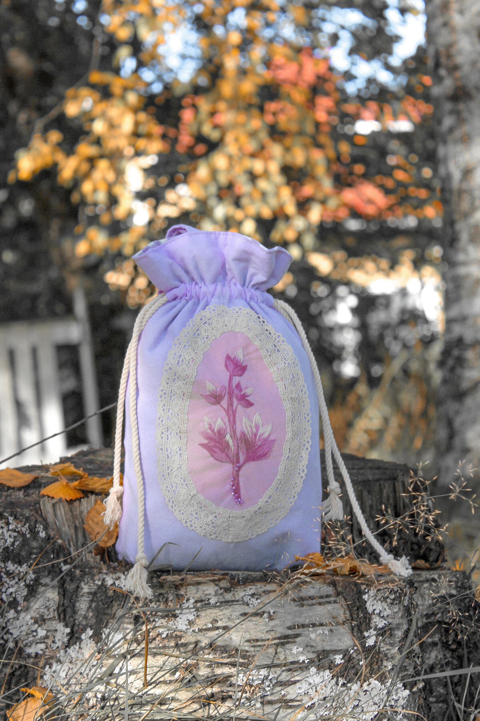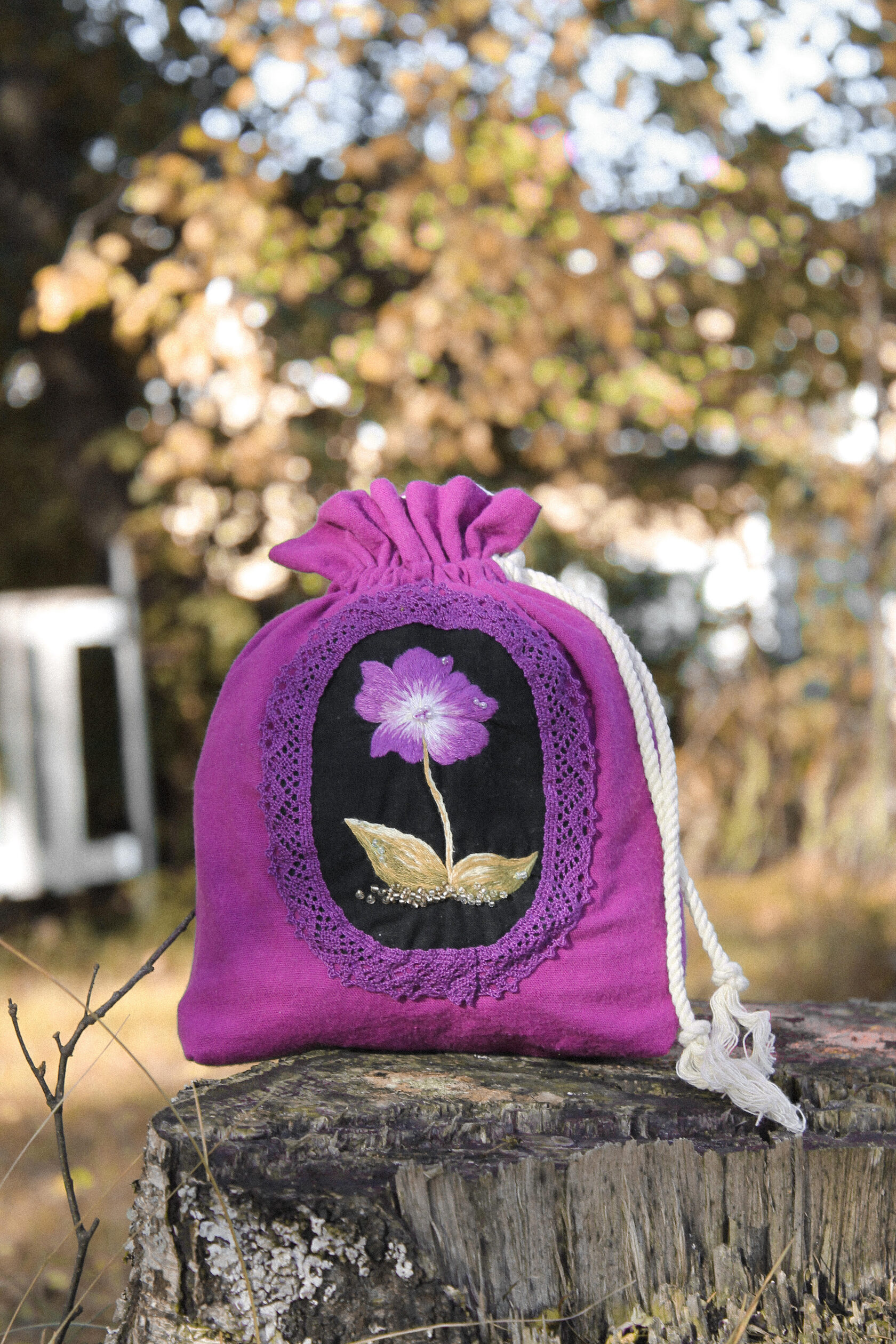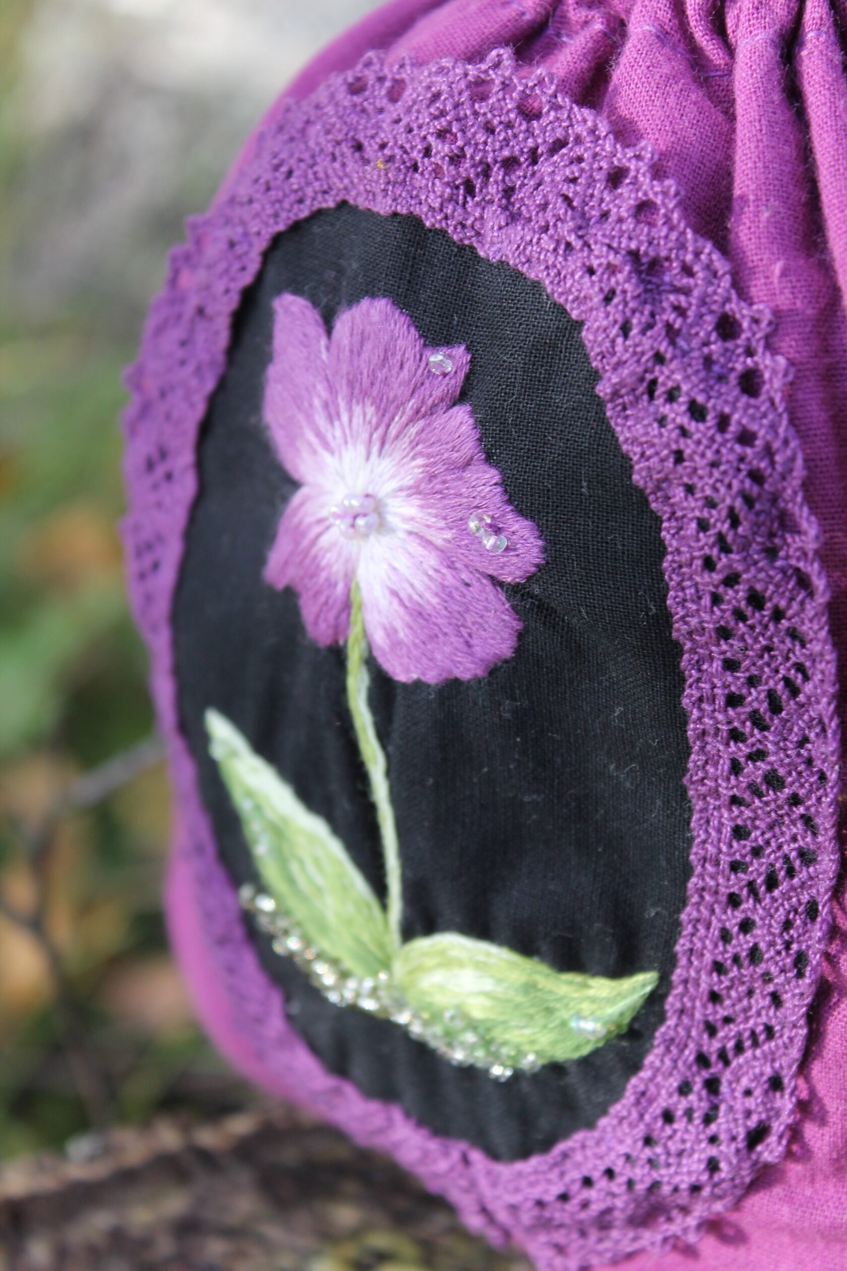 "Purple Pouch" Bag in a single copy, hand embroidery with satin stitch