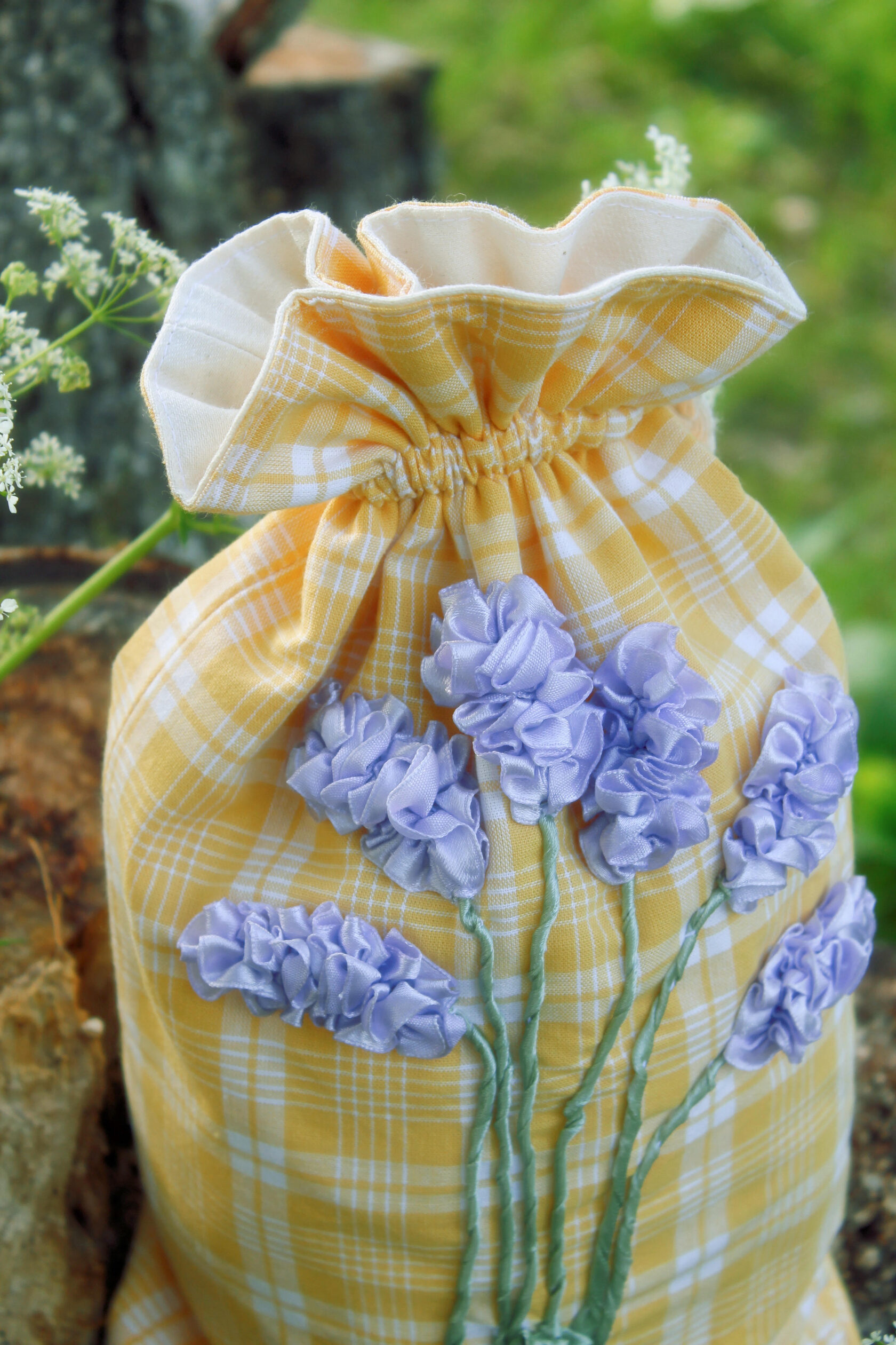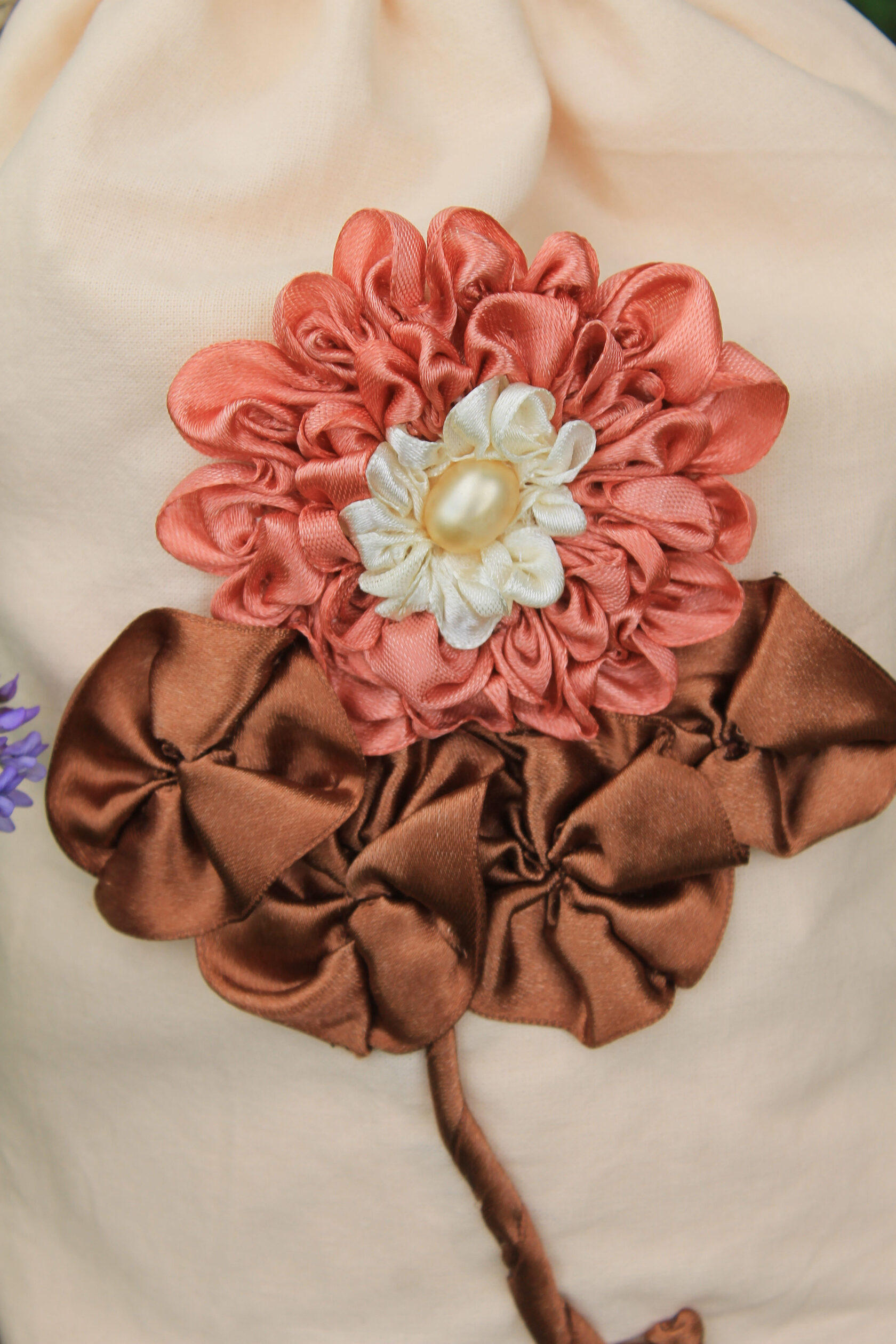 "Hyacinth flower pouch" Bag in a single copy, hand ribbon embroidery
