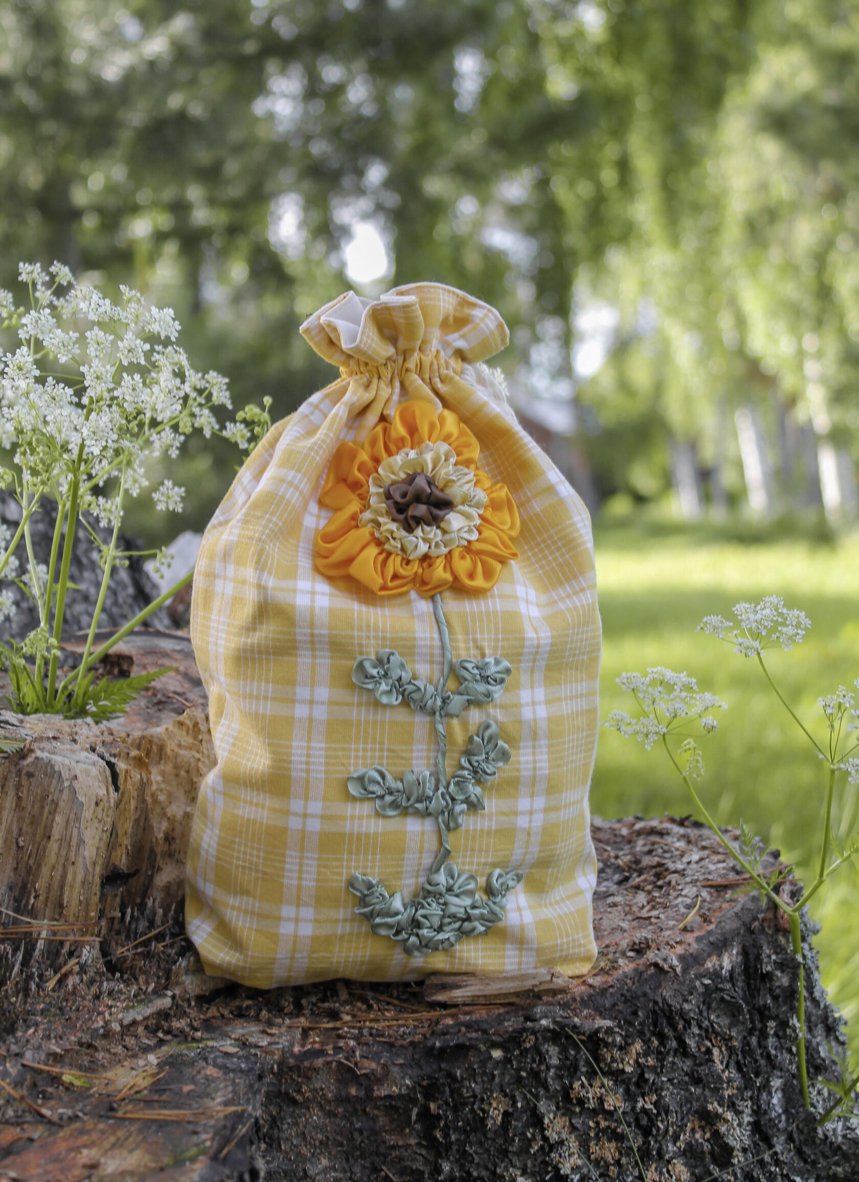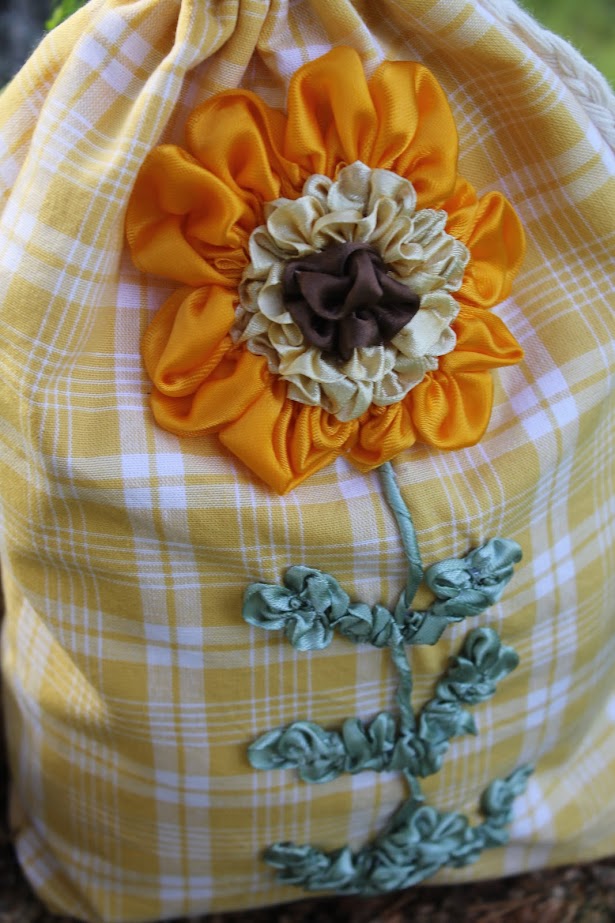 "Summer sunflower pouch" Bag in a single copy, hand ribbon embroidery