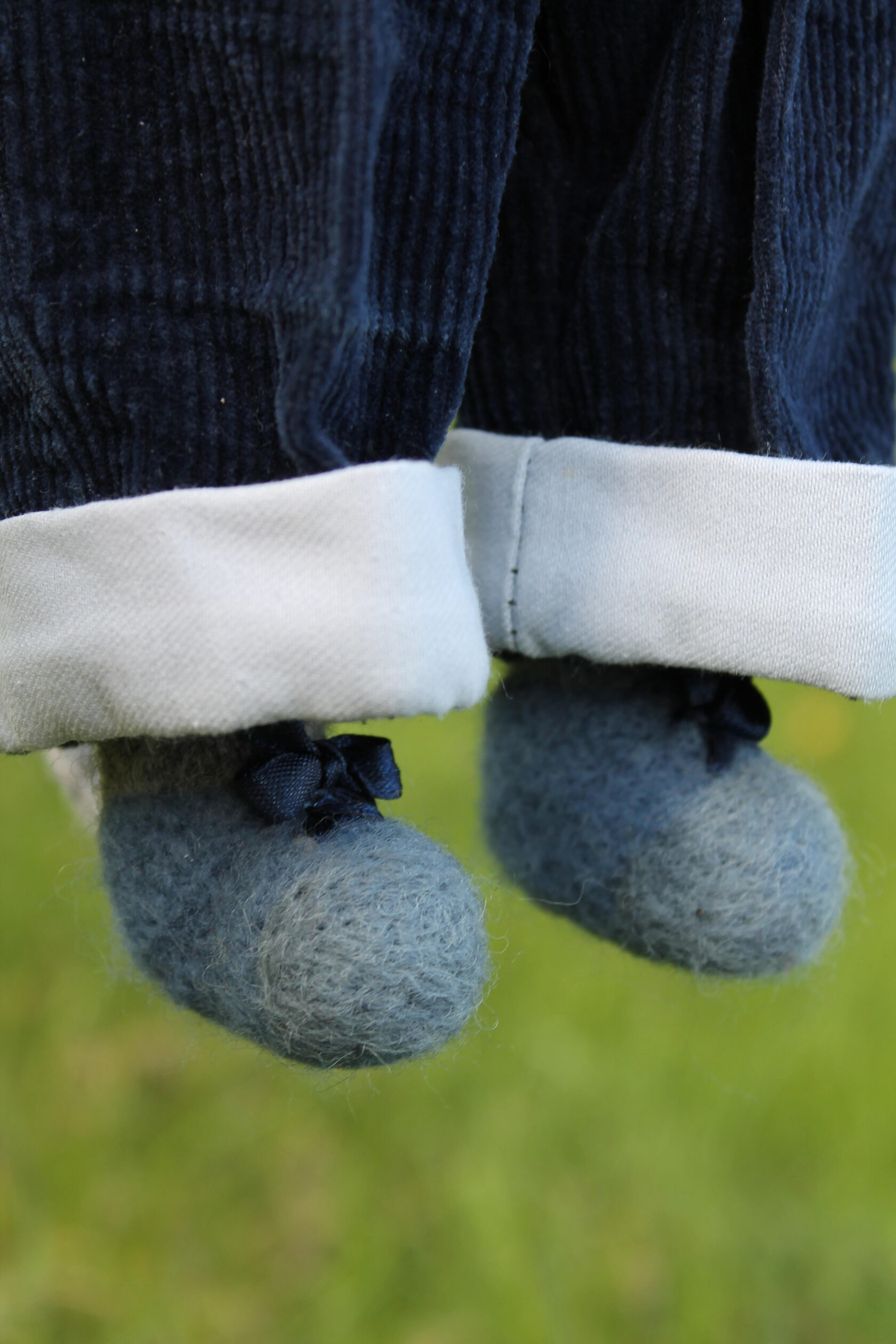 I used wool yarn, then felting wool and cotton as outfits. All dolls consist of 75% wool. He measure 34 cm's.