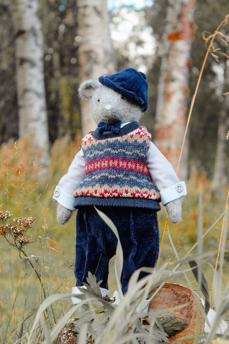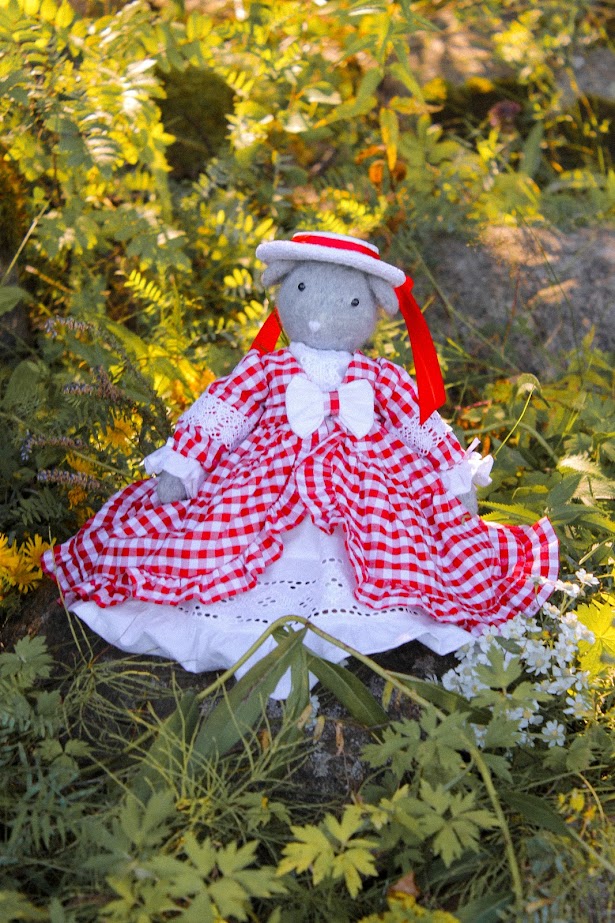 This textile doll is from the collection of "Forest Ladies and Gents". Each doll is special and unique in its own way. Each has a special outfit and mood. They also have individual coasters with names. The collection includes mice, foxes and bear cubs.